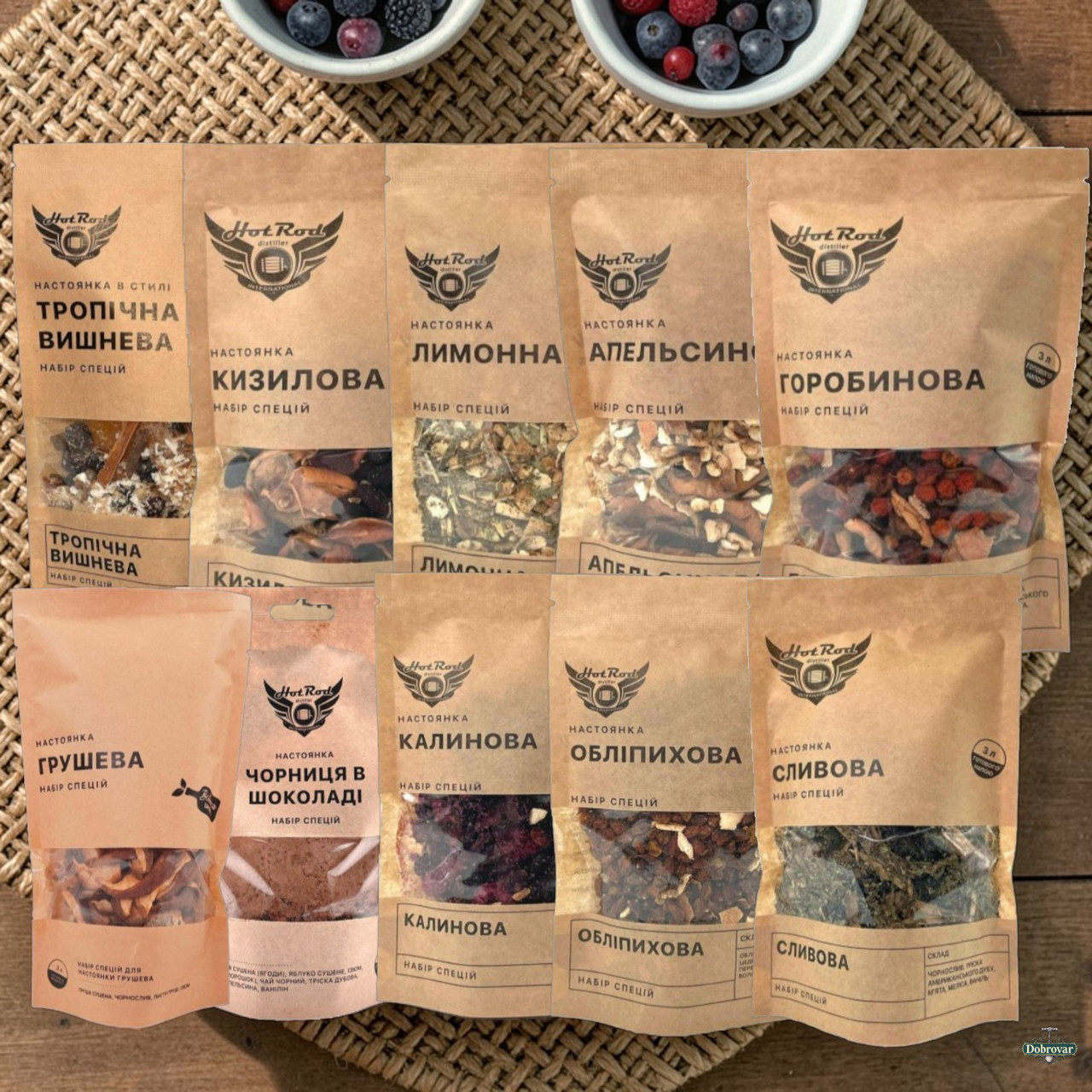Подарунковий набір натуральних спецій для настоянок "Ягідно-фруктовий крафт" 10 смаків на 30 літрів, для поціновувачів крафтових напоїв!