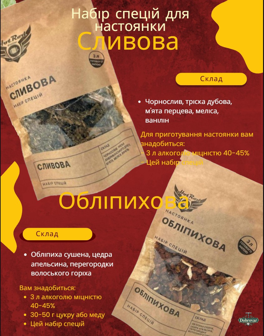 Усі суміші в наборі створені з натуральних фруктів, ягід, спецій і прянощів, які гармонійно поєднуються між собою та розкривають глибокий смак і насичений аромат напою. Завдяки цьому навіть звичайна основа перетворюється на вишуканий крафтовий напій із багатим смаковим букетом.