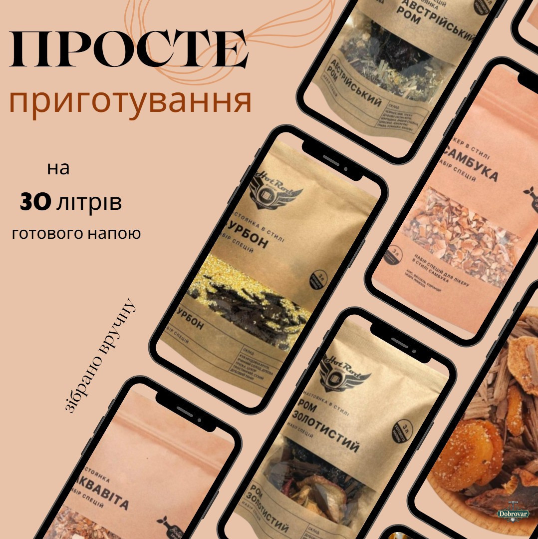 Це чудова можливість перетворити звичайний дистилят на вишуканий напій із глибоким ароматом і багатим смаком. Кожна суміш створена з ретельно підібраних натуральних спецій, трав, ягід і прянощів, які допомагають відтворити характерні ноти популярних алкогольних стилів світу.
