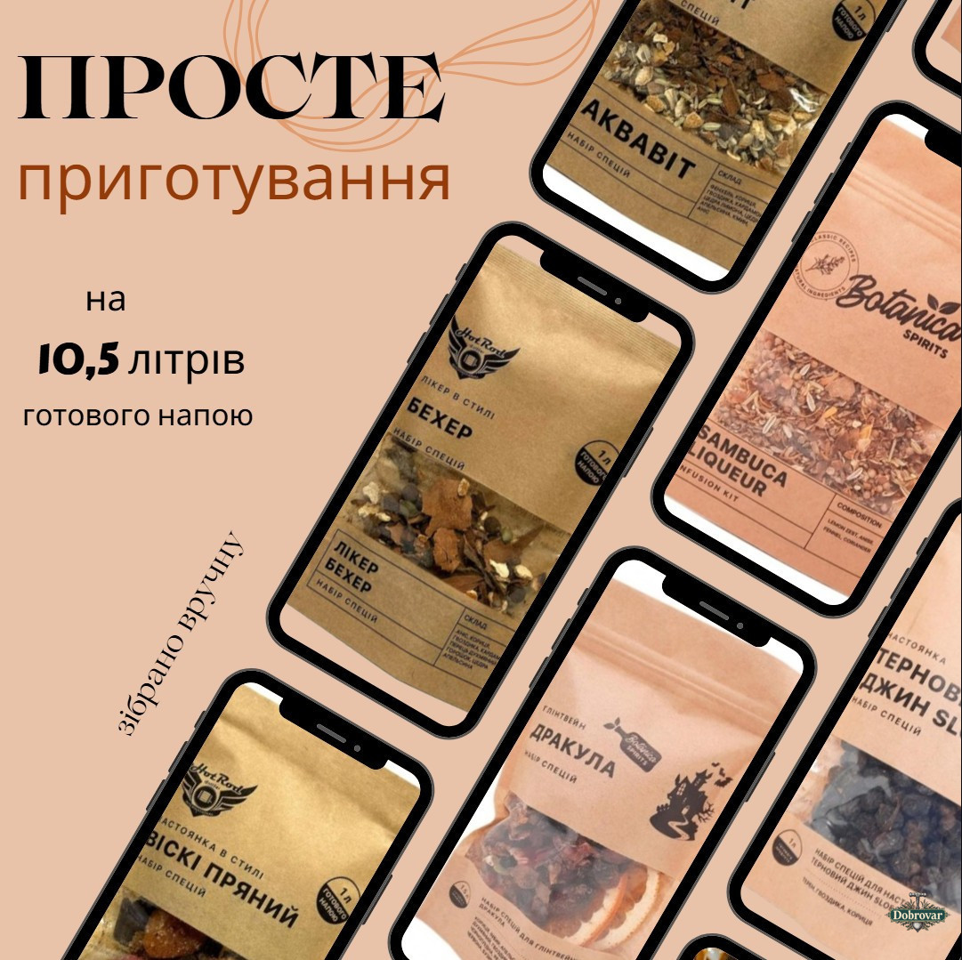 Зібрані з натуральних інгредієнтів, наші спеції не містять штучних добавок, що забезпечує насичений і природний смак. Експериментуйте з рецептами, створюйте свої унікальні настойки та потіште своїх близьких та друзів ароматними напоями, приготованими власноруч.