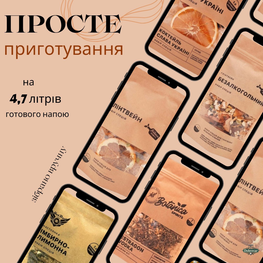 Цей набір відкриває можливість легко приготувати до 4.7 літра ароматних напоїв у домашніх умовах. Вам не потрібно підбирати спеції самостійно — ми вже створили збалансовані композиції, які ідеально розкривають смак як міцних, так і безалкогольних напоїв.