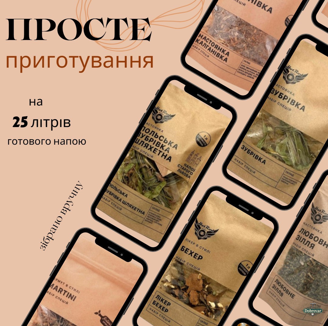Кожен пакет — це окрема історія смаку: від класичних трав'яних настоянок до складніших бітерів і авторських міксів. Ви зможете експериментувати з міцністю, насиченістю й часом настоювання, створюючи власні унікальні рецепти.